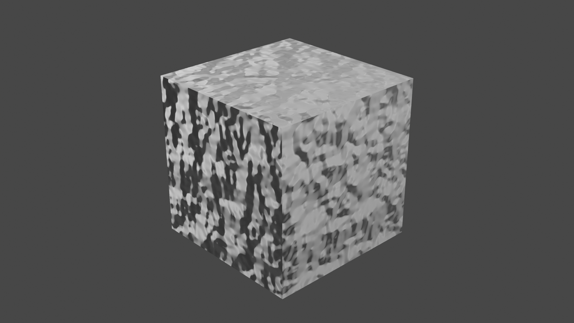 With a test render, you may notice that it doesn’t look good at all. That is because we need enough vertices to work with. Remember that displacement is actually changing the geometry. Below are two examples. The top image is a basic cube with no additional vertices. On the bottom is a cube with 5 subdivisions as well as a subdivision surface modifier. Although adding vertices may seem to defeat the purpose of keeping the model simple, keep in mind that the model is still a cube, and the number of vertices is only 218 vertices.