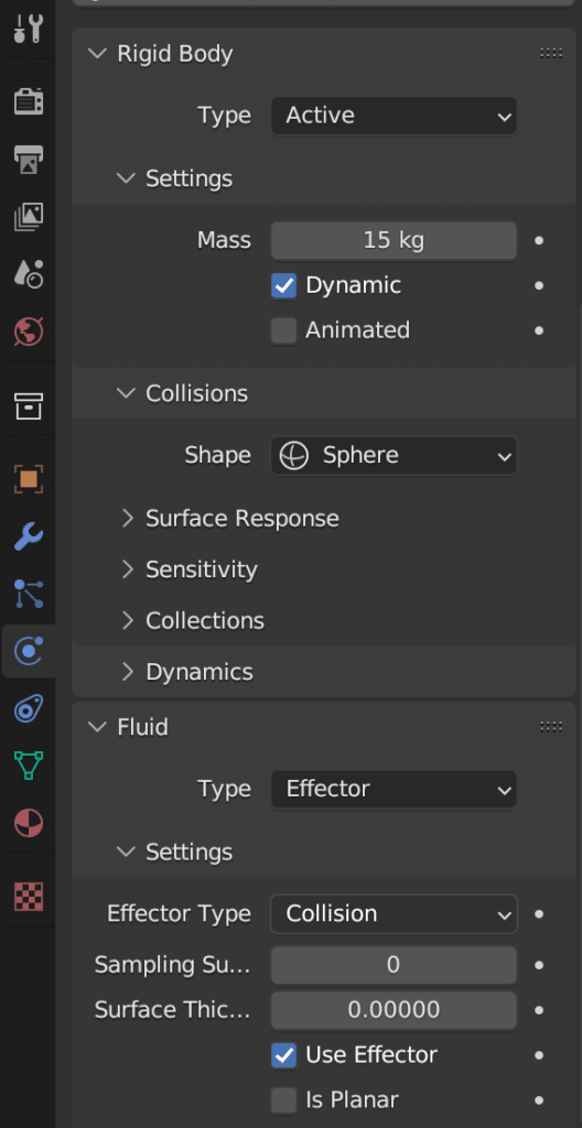 Next, add fluid effectors to both the container and the sphere (if you haven’t already done so).