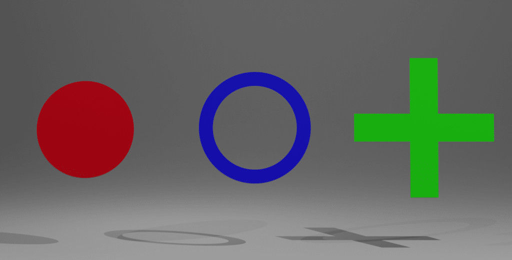 We will create a circle, cross, and doughnut. The code for each of these is not complicated. I started with the basic code from the blog post above with a few minor modifications.