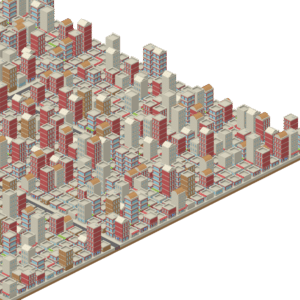 When I started this project, I planned to simply create a tile matrix and walk through the matrix generating a random tile for each space in the map. However, as soon as I started creating the code, I realized it was much more complicated. Roads are connected together. You don’t want a road tile randomly interspersed with buildings. In addition, the roads have to make sense.