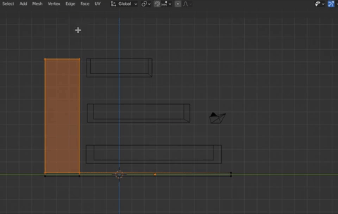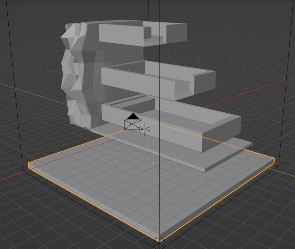 To create the boxes, we use the default cube. We scaled it larger to create a larger base in the X and Y directions (s). Then we scaled it down in the z direction (s + z).
