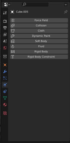 First, add a cube (shift + a, Mesh->Cube) and scale it up to cover all of our models (s). This cube will be our domain. The side of the domain shows the volume in which the simulation calculations will occur. Anything outside of the domain box will not affect the simulation. From the property panel, select Physics->Fluid->Domain.