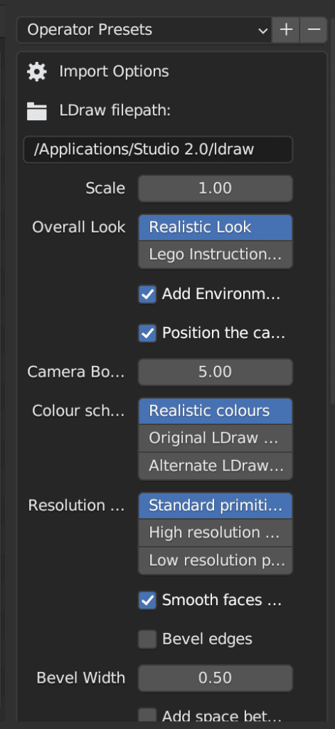 Next, we need to point the plugin to the LDraw Library. The LDraw Library is a list of every Lego brick ever made. This library is based on the LDraw standard, which is an open source standard. You have two options for the LDraw Library.
