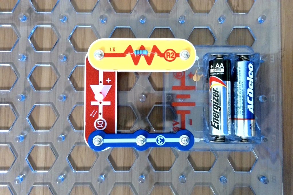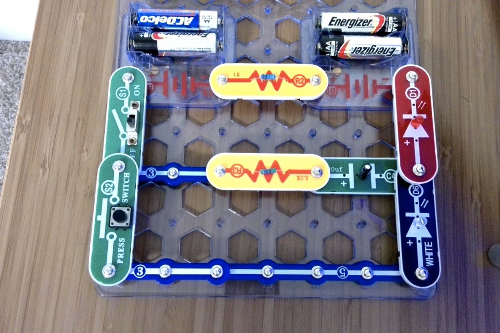 This is just a quick overview of resistors, LEDs, and capacitors. Hopefully, with this background you can feel more confident making a few basic circuits. In future posts, we will cover more components (e.g., the transistor and some of the Snap Circuit integrated circuits (IC)). In addition, we will analyze some of the circuits in the book to understand why they work.