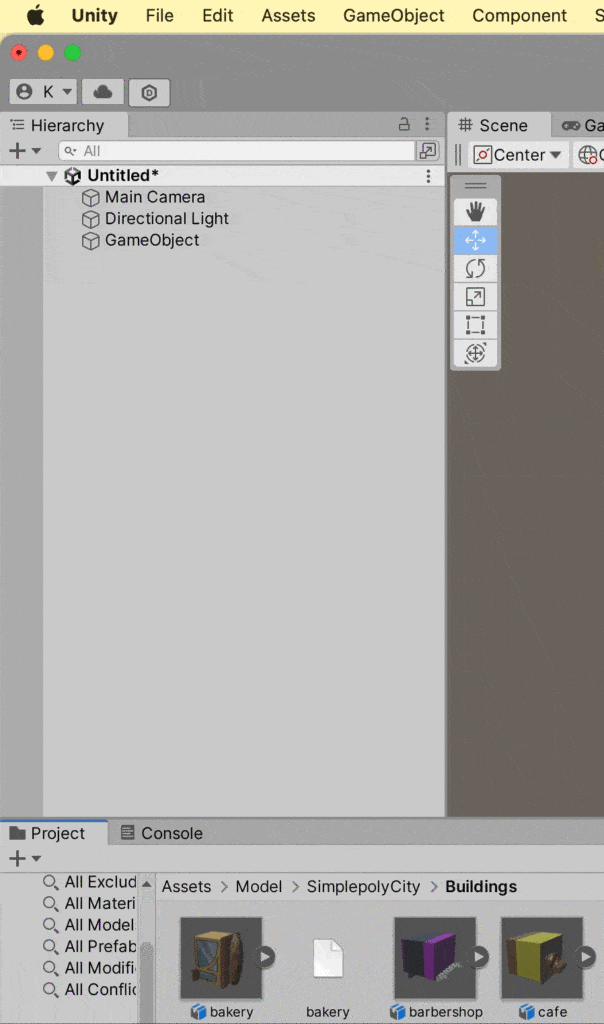 All of the buildings in Simplepoly City are in one blend file. Therefore, we need to export each of the buildings we want to use. The general steps we follow: