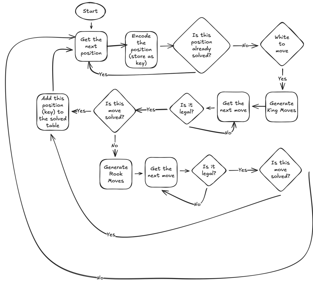 The key insight is retrograde analysis. Traditional game tree search works forward from a position, exploring possible moves. Retrograde analysis works backward from known outcomes.